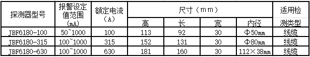 1、共6种型号,分为两类,一类是圆形互感器,应用于线缆类剩余电流探测,另一类是长条形互感器,应用于铜排类剩余电流探测,上图为圆形互感器,具体型号如下表;