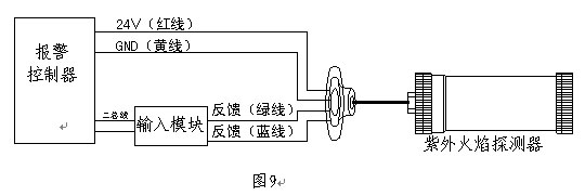 (4)JTGB-ZW-1501型核中警防爆紫外火焰感光探测器安装接线示意图(见图9)