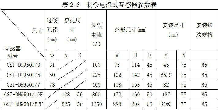 一、GST-DH9501/22F剩余电流互感器产品规格