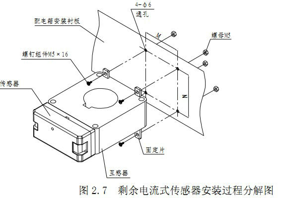 1、剩余电流式传感器安装过程分解图如图 2.7所示,M、N的值见表 2.6所示。